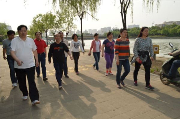 4月28日下午4:00,斜阳浓浓,微风徐徐,在开云球赛_开云(中国) 领导秦广远、付立文等同志的带领下,近40名员工在楼下准时集合,排成整齐的健步走队伍,挥舞着“郑州市建设投资集团”的旗帜,精神抖擞地沿着如意湖畔阔步前行,在运动中体验健康和快乐。