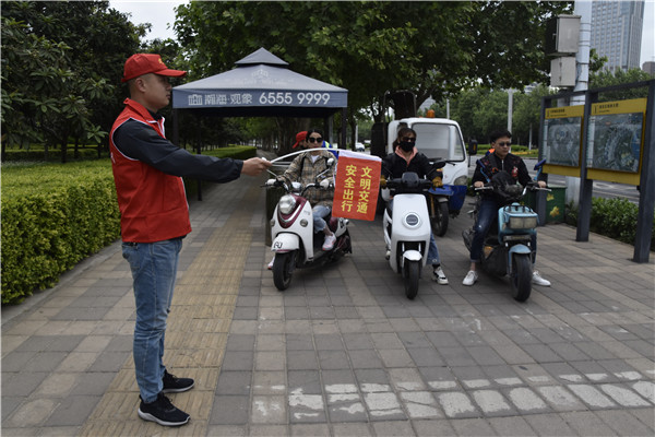 此次活动分为上午8:00—9:00,下午18:00—19:00两个上下班高峰时段进行,一组四人,每天两组志愿者轮流执勤。志愿者们头戴小红帽,身穿红马甲、手持“文明出行、 安全出行”小红旗,在黄河东路众意西路交叉的四个路口处分别进行引导活动,通过举落小红旗,引导行人通过斑马线安全过马路,劝阻横穿马路、乱闯红灯等不文明行为,引导市民遵守交通法规,文明行路、文明行车。开云球赛_开云(中国) 总经理助理祁红军同志身体力行,带领志愿者们一同维持交通秩序,对行人、非机动车闯红灯时,进行耐心劝告;对市民不在白线外等候时,给予及时纠正,引导市民养成良好的出行习惯,提高过往行人文明出行和交通安全意识。
