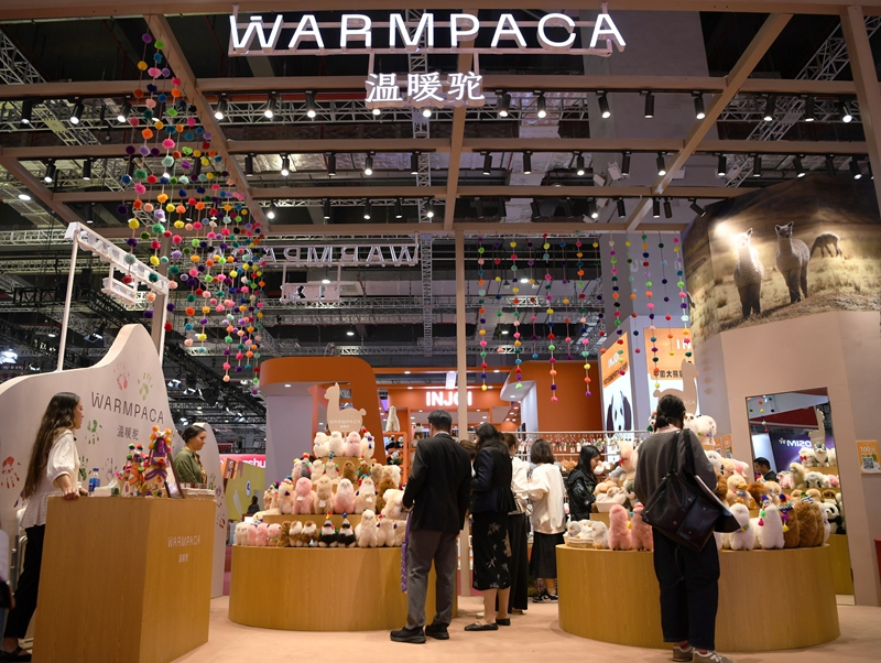 这是11月5日在上海拍摄的第七届进博会秘鲁“温暖驼”展台。今年,秘鲁品牌“温暖驼”连续第七年亮相进博会,受到更多中国消费者的喜爱。新华社记者 金马梦妮 摄