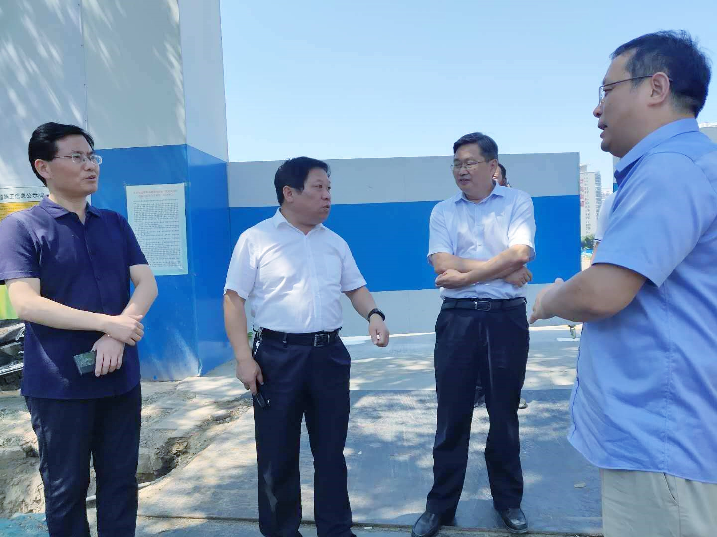 期间,对迎宾路提升工程采用高规格装配式围挡的做法给予了充分肯定,建议市政工程推广应用。同时,郑对东新区房建工地率先落实实砌围墙的做法给予了充分认可,提倡全市房建工地进行学习推广。