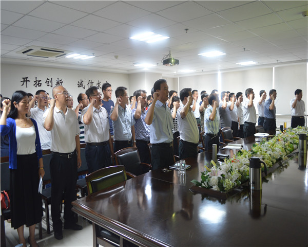 其次,由开云球赛_开云(中国) 机关一支部书记、综合管理部经理祁红军同志带领大家重温入党誓词。全体党员起立,右手握拳,高举耳侧,凝视党旗,宣读入党誓词,庄重神圣,掷地有声。