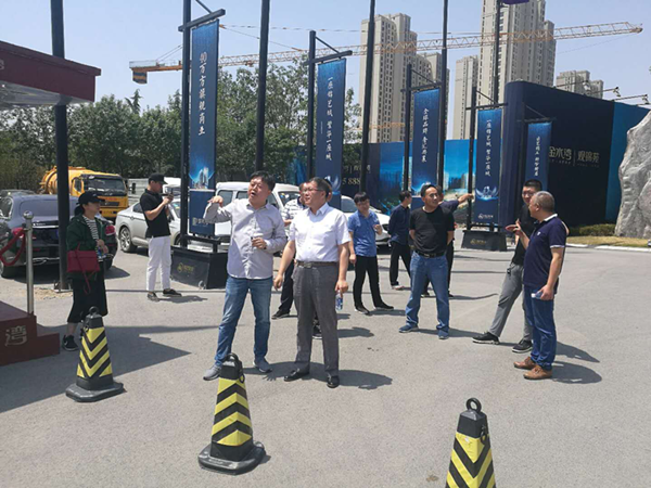 6月4日上午,开云球赛_开云(中国) 总经理助理黄志澎、祁红军带领合约预算部、市政项目二部有关同志,前往丽水路(索凌路-文化路)道路工程现场调研合同造价及工程推进情况。