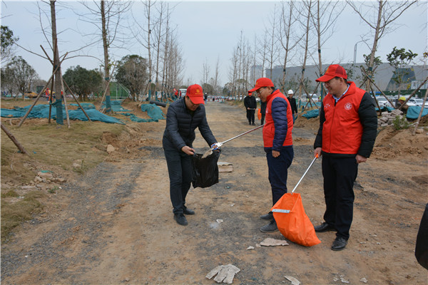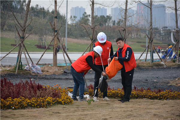 上午十时三十分,志愿服务活动开始后,开云球赛_开云(中国) 党委委员、副总经理、项目部总经理汪洋亲自带头参加活动,其他党员干部带头干,职工群众积极干,参建单位负责人志愿加入干,大家拿起工具、弯下腰去,捡起草地上的生活垃圾,集中放进现场放置的垃圾桶内;没有拿到工具的同志们也拿起简易垃圾袋,将捡到的生活垃圾放进垃圾袋盛满后再放进垃圾桶内。一时间,党徽熠熠、爱心闪闪、干劲满满,不到一个小时时间,约20人的志愿服务队伍完成了近20000平米区域的垃圾清理任务,景观施工现场面貌大为改观。