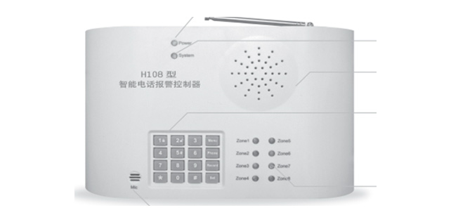 功能概述: 108智能防盗报警控制器是一种利用电话线路传递报警信息的智能化设备。有八路无线和四路有线防区。可单机使用,也可与报警中心联网组成区域联网报警系统。本系统探测器和主机自动对码,主机采用先进的微处理器为控制中心,安装容易、操作简便,可同时储存多组接收报警的电话号码。