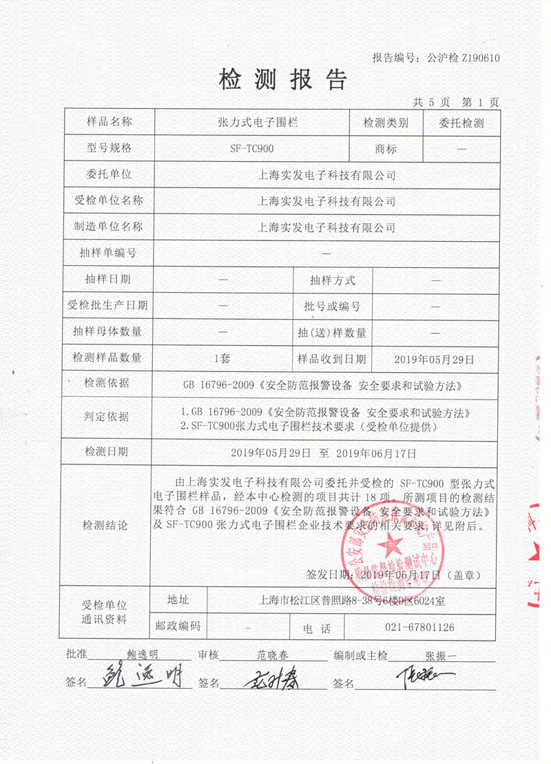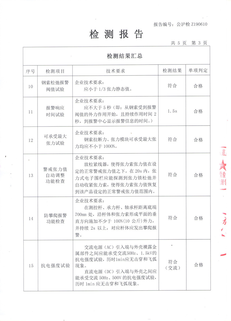 张力式电子围栏检测报告(国标)